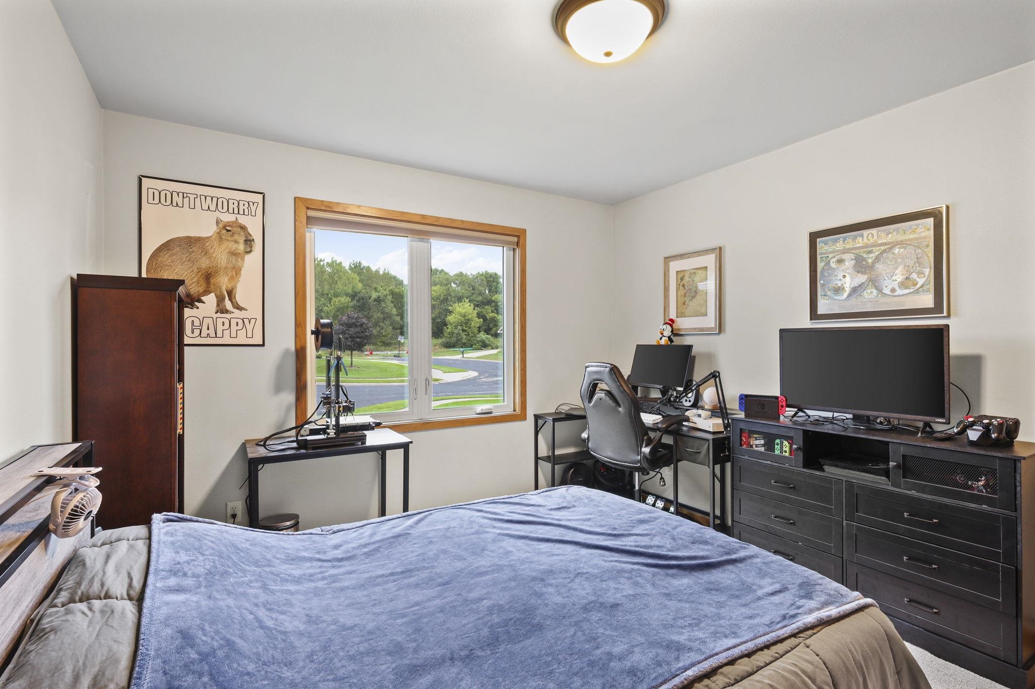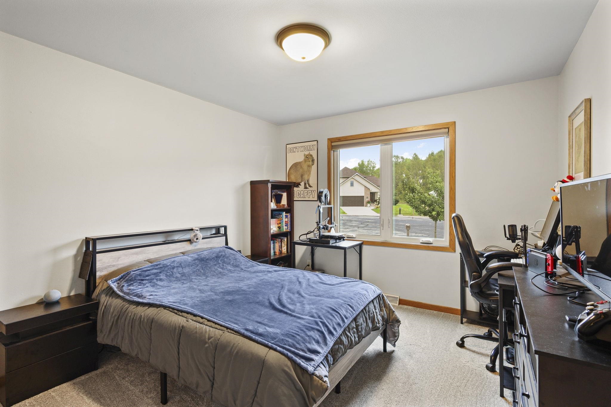 Situated on a quiet cud-de-sac, this beautiful 4-bedroom ranch home is thoughtfully designed with an open layout, generous natural light and quality finishes throughout. It features spacious living areas, a modern kitchen with custom cabinets, and is perfect for entertaining. Within the last 3 years the following has been upgraded: new furnace and ductwork, new roof, added 4th bedroom and office in the basement, new carpet, new patio and steps, upgraded front gutters to 6", new refrigerator, and a fresh coat of paint.