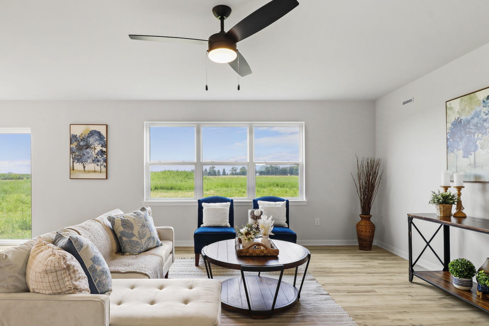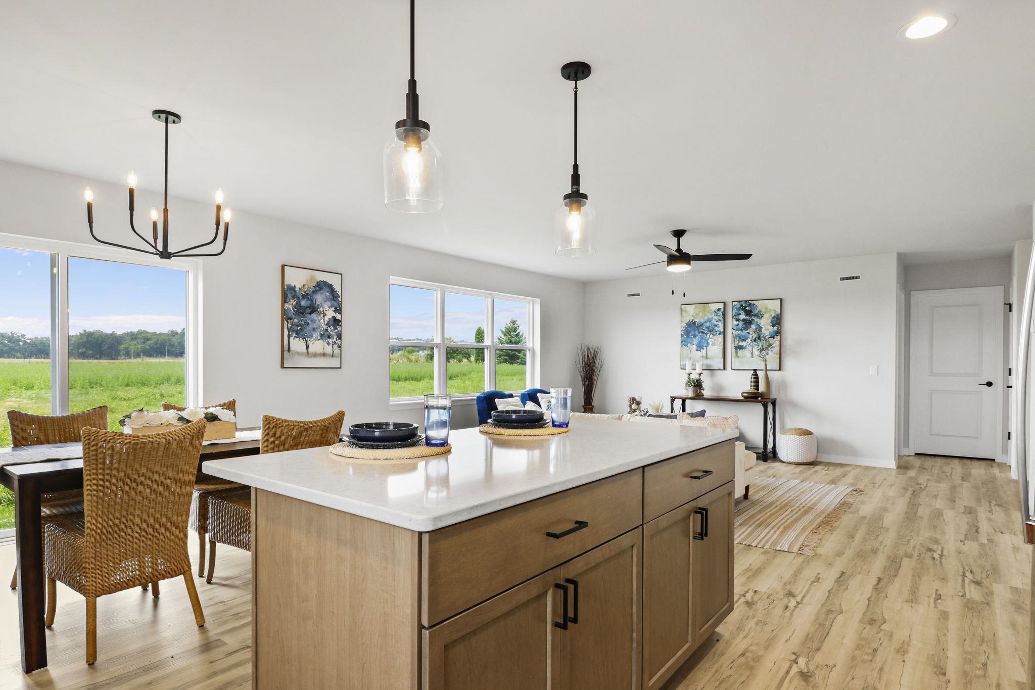 Welcome home to Shamrock Estates! This farmhouse-style ranch is set on 1.5 acres in the scenic Green County countryside, offering space, comfort, and flexibility. The open-concept main level is designed for easy living and features 3 bedrooms, 2 full baths, and a convenient laundry/mudroom. The primary suite includes a walk-in shower, spacious vanity, and walk-in closet. A 3-car garage provides ample room for vehicles, storage, or hobbies, with additional space on the property for outbuildings. The unfinished lower level is ready for future expansion with an egress window and rough-in plumbing for a bathroom. Photos and virtual tour are of a similar completed model with the same floor plan. Seller is a licensed real estate company.