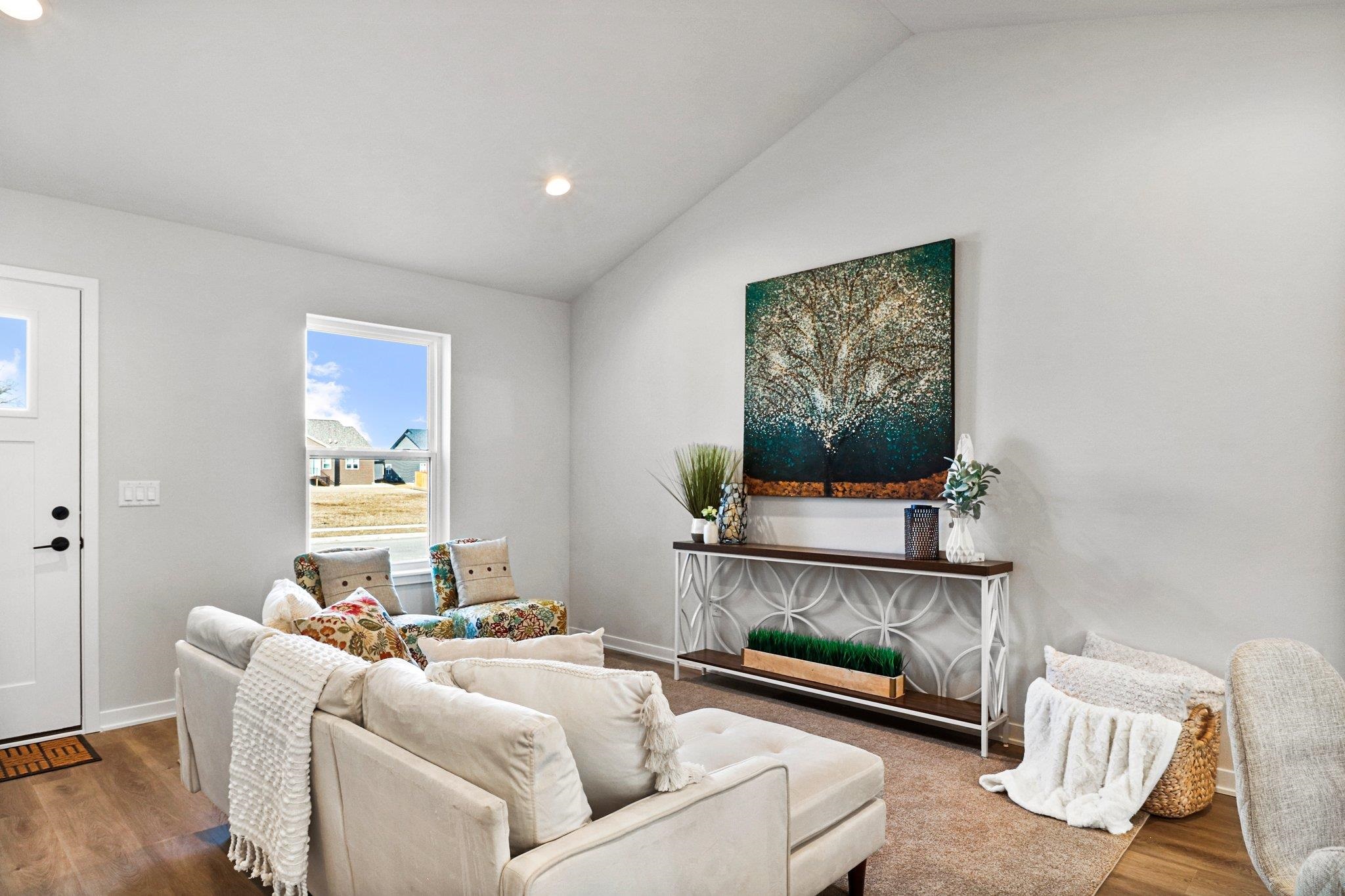 Beautiful farmhouse-style half duplex featuring a first-floor primary suite and convenient main-level laundry just off the kitchen. This home offers 3 bedrooms, 2.5 baths, and a 2-car garage. Enjoy soaring ceilings in the great room and an open-concept kitchen and living area, ideal for everyday living and entertaining. The well-appointed kitchen includes modern appliances, quartz countertops, and ample cabinetry. The unfinished lower level provides excellent storage or future living space with an egress window and rough-in plumbing for an additional bath. Photos and virtual tour are of a similar completed model with the same floor plan. Seller is a licensed real estate company.