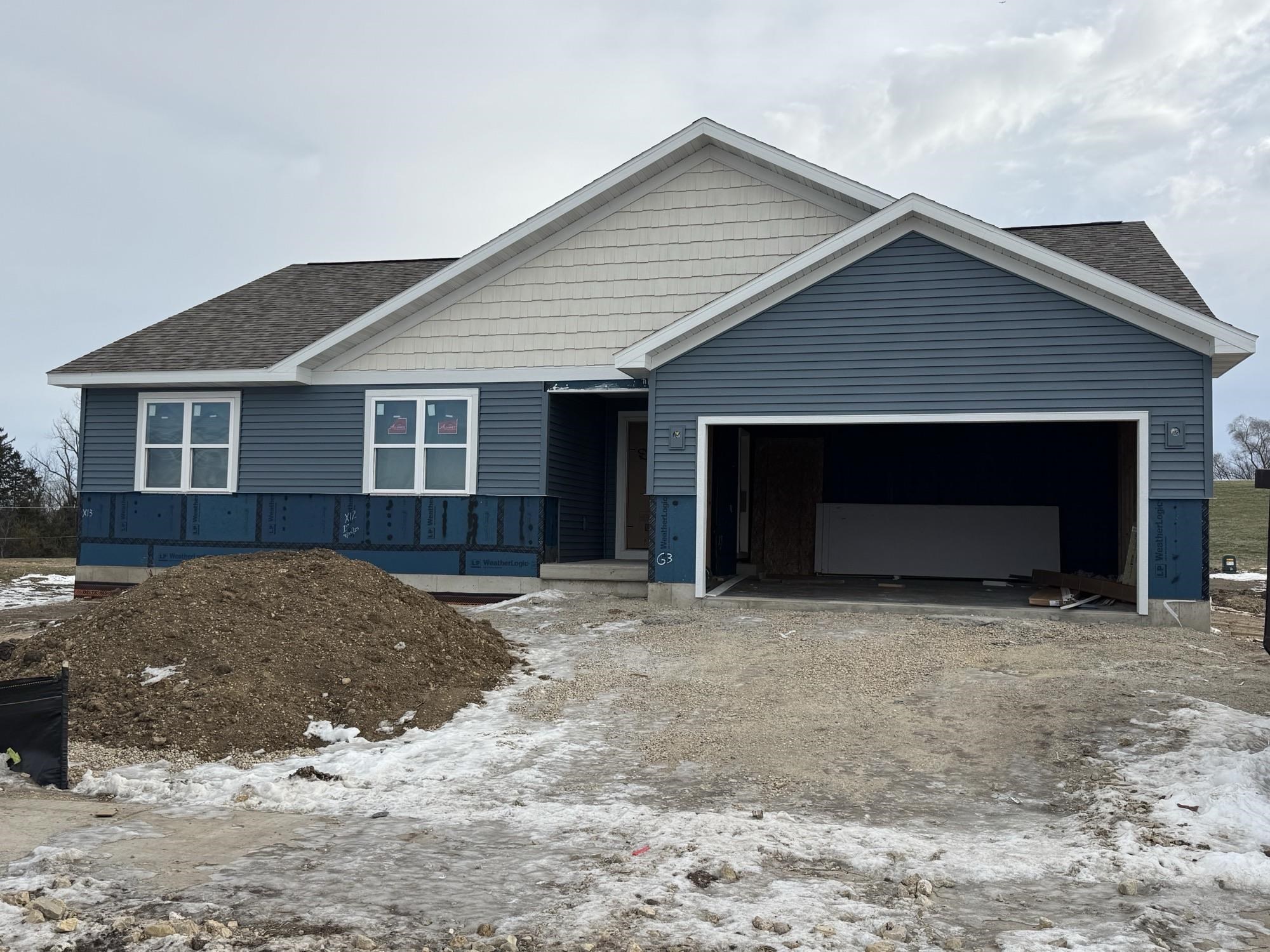 Brand-new construction on 1.5 acres in the peaceful Shamrock Estates neighborhood in Albany. Eldon Homes, your hometown builder presents "The Aspen plan." This plan is thoughtfully designed with an open main-level layout and a first-floor guest suite with a full bathroom. Quality craftsmanship shines throughout with custom maple cabinetry, upgraded GE appliances, and beautiful hard-surface flooring. The lower level is ready for future expansion with roughed-in plumbing for a full bath and an egress window. An additional 8x11 garage storage area provides extra room for tools, toys, or seasonal items. Located in Green County, Shamrock Estates offers a peaceful rural setting with flexibility for detached outbuildings and additional storage. Enjoy added confidence with an included transferable warranty. *Photos and virtual tour shown are of a similar completed model with the same plan. Seller is a licensed real estate company. Seller is a licensed real estate company.